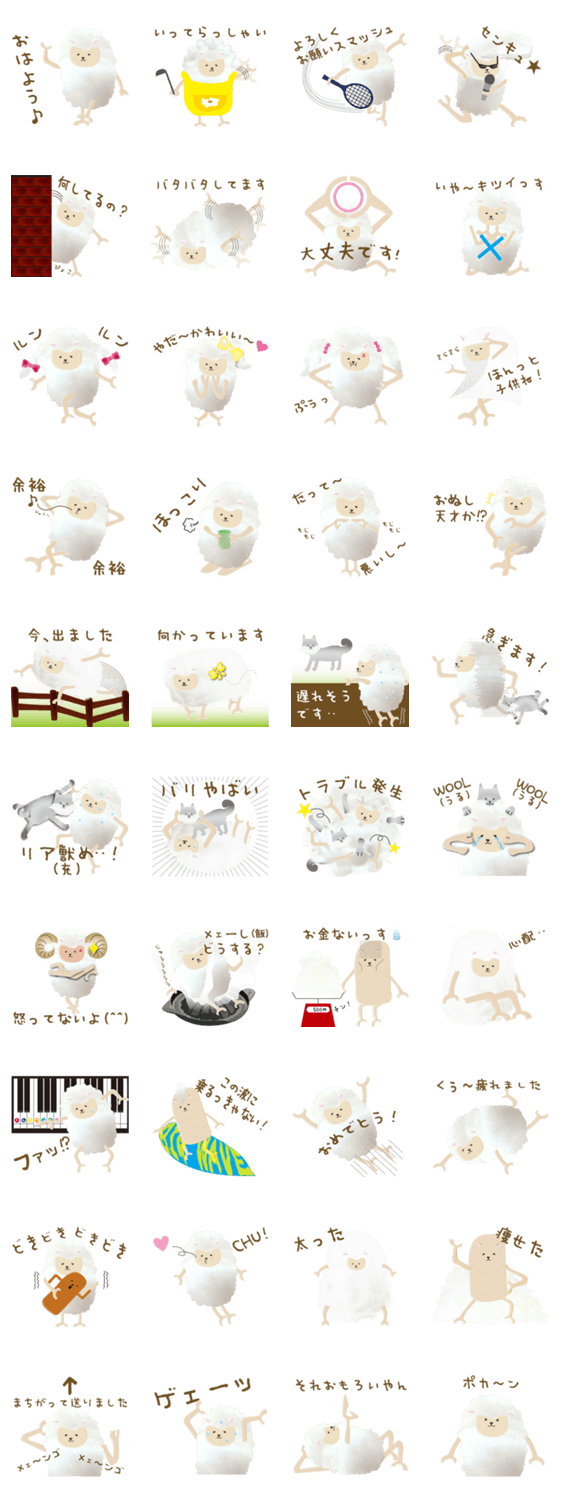 もふもふ羊のメーベェー KENPO コメントをどうぞ 大人気「羊のメーベェー」のスタンプ第3弾!日常の様々なシチュエーションで便利に使えます。もふもふな羊に癒されてください。 このスタンプどう思う?!↓クリックで投票♪好き (0)かわいい (0)かっこいい (0)おもしろい (0)使いやすそう (0)欲しい (0)萌え (0)ほっこりする (0)おしゃれ (0)ゆるい (0)こわい (0)ウザい (0)キモい (0)ムカつく (0)持ってる (0)癒される (0)セクシー (0)個性的 (0)私は買わない (0)誰かプレゼントして! (0) 購入・プレゼントする Facebookでシェア Twitterでシェア