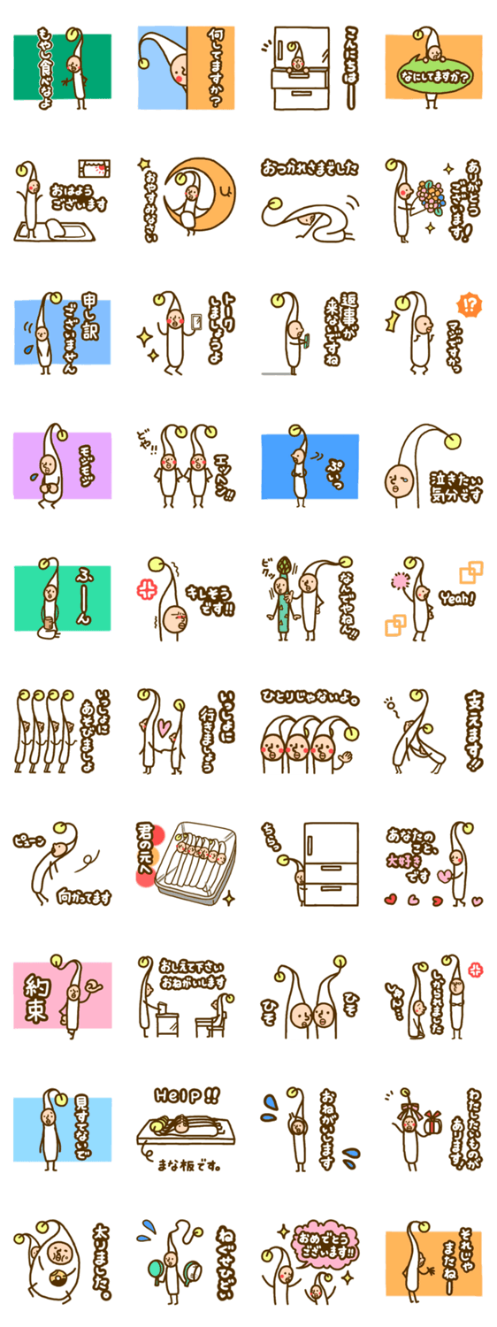 もやしやし 神川 コメントをどうぞ 細いもやしのスタンプ。シュールでかわいい?もやし達が会話に参加致します。白ふちあり。 このスタンプどう思う?!↓クリックで投票♪好き (0)かわいい (0)かっこいい (0)おもしろい (0)使いやすそう (0)欲しい (0)萌え (0)ほっこりする (0)おしゃれ (0)ゆるい (0)こわい (0)ウザい (0)キモい (0)ムカつく (0)持ってる (0)癒される (0)セクシー (0)個性的 (0)私は買わない (0)誰かプレゼントして! (0) 購入・プレゼントする Facebookでシェア Twitterでシェア