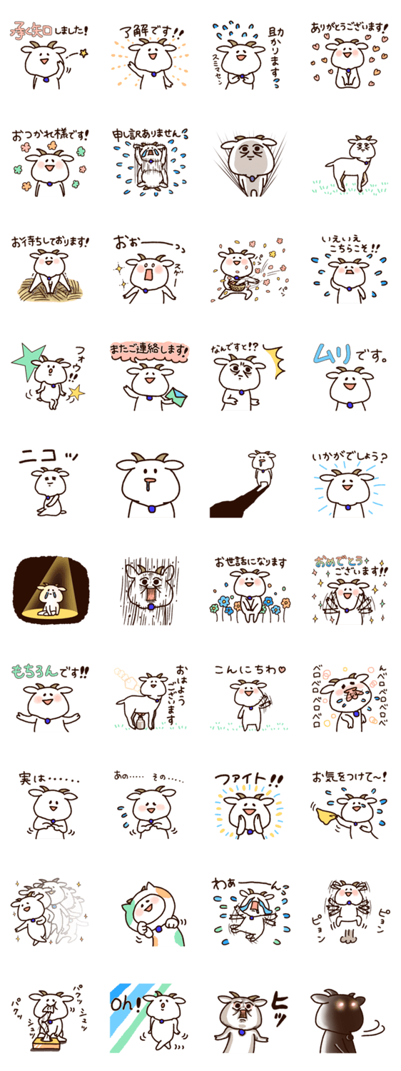 やぎスタンプ(敬語)2 たむむ コメントをどうぞ 敬語を使うやぎのスタンプ第2弾です。 このスタンプどう思う?!↓クリックで投票♪好き (0)かわいい (0)かっこいい (0)おもしろい (0)使いやすそう (0)欲しい (0)萌え (0)ほっこりする (0)おしゃれ (0)ゆるい (0)こわい (0)ウザい (0)キモい (0)ムカつく (0)持ってる (0)癒される (0)セクシー (0)個性的 (0)私は買わない (0)誰かプレゼントして! (0) 購入・プレゼントする Facebookでシェア Twitterでシェア