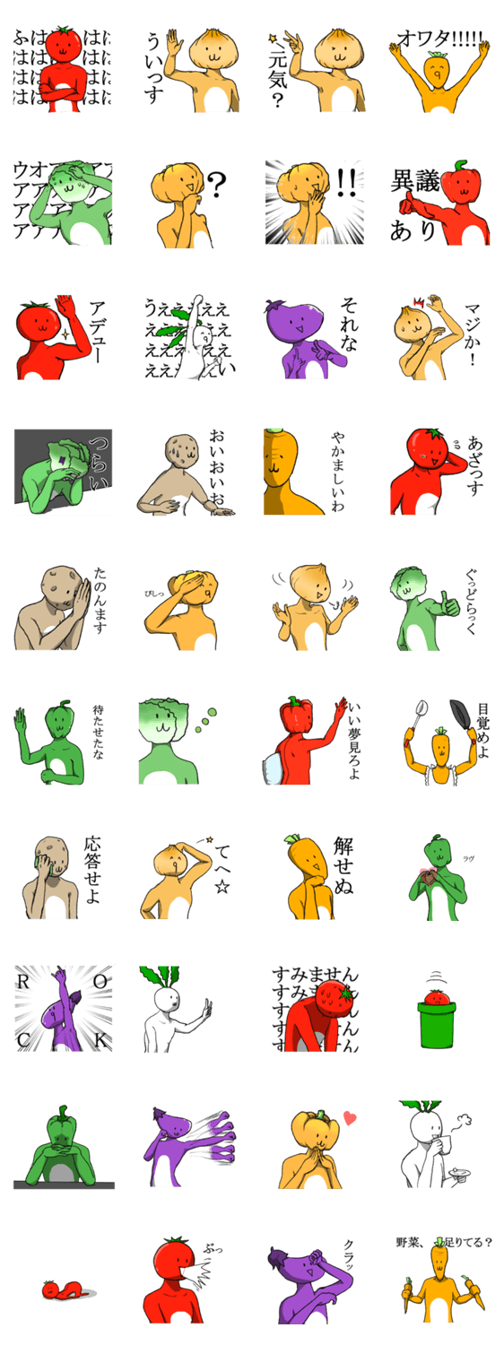 やさいせいじん 砂糖不使用 コメントをどうぞ ▼ごきげんよう しょくん。▼われわれは やさいせいじん である。 このスタンプどう思う?!↓クリックで投票♪好き (0)かわいい (0)かっこいい (0)おもしろい (0)使いやすそう (0)欲しい (0)萌え (0)ほっこりする (0)おしゃれ (0)ゆるい (0)こわい (0)ウザい (0)キモい (0)ムカつく (0)持ってる (0)癒される (0)セクシー (0)個性的 (0)私は買わない (0)誰かプレゼントして! (0) 購入・プレゼントする Facebookでシェア Twitterでシェア
