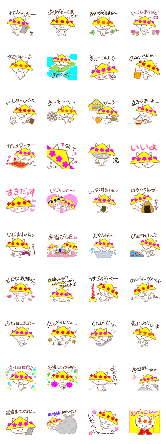 やっぱりいいにゃ~山形! みーむむ コメントをどうぞ 山形は村山地方の心温まるずーずー弁の第2弾!地元色濃いめ。めんこい花笠にゃんこが癒し系のなまりで気持ちを伝えます。 このスタンプどう思う?!↓クリックで投票♪好き (0)かわいい (0)かっこいい (0)おもしろい (0)使いやすそう (0)欲しい (0)萌え (0)ほっこりする (0)おしゃれ (0)ゆるい (0)こわい (0)ウザい (0)キモい (0)ムカつく (0)持ってる (0)癒される (0)セクシー (0)個性的 (0)私は買わない (0)誰かプレゼントして! (0) 購入・プレゼントする Facebookでシェア Twitterでシェア