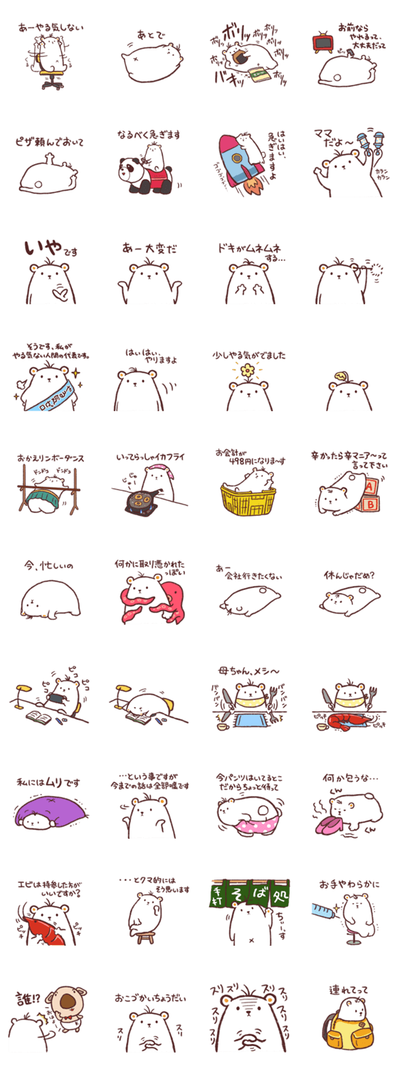 やる気のない、くまぞう カラルモ コメントをどうぞ やる気のない、くまのくまぞうスタンプです。やる気のない時に使ってください。 このスタンプどう思う?!↓クリックで投票♪好き (0)かわいい (0)かっこいい (0)おもしろい (0)使いやすそう (0)欲しい (0)萌え (0)ほっこりする (0)おしゃれ (0)ゆるい (0)こわい (0)ウザい (0)キモい (0)ムカつく (0)持ってる (0)癒される (0)セクシー (0)個性的 (0)私は買わない (0)誰かプレゼントして! (0) 購入・プレゼントする Facebookでシェア Twitterでシェア