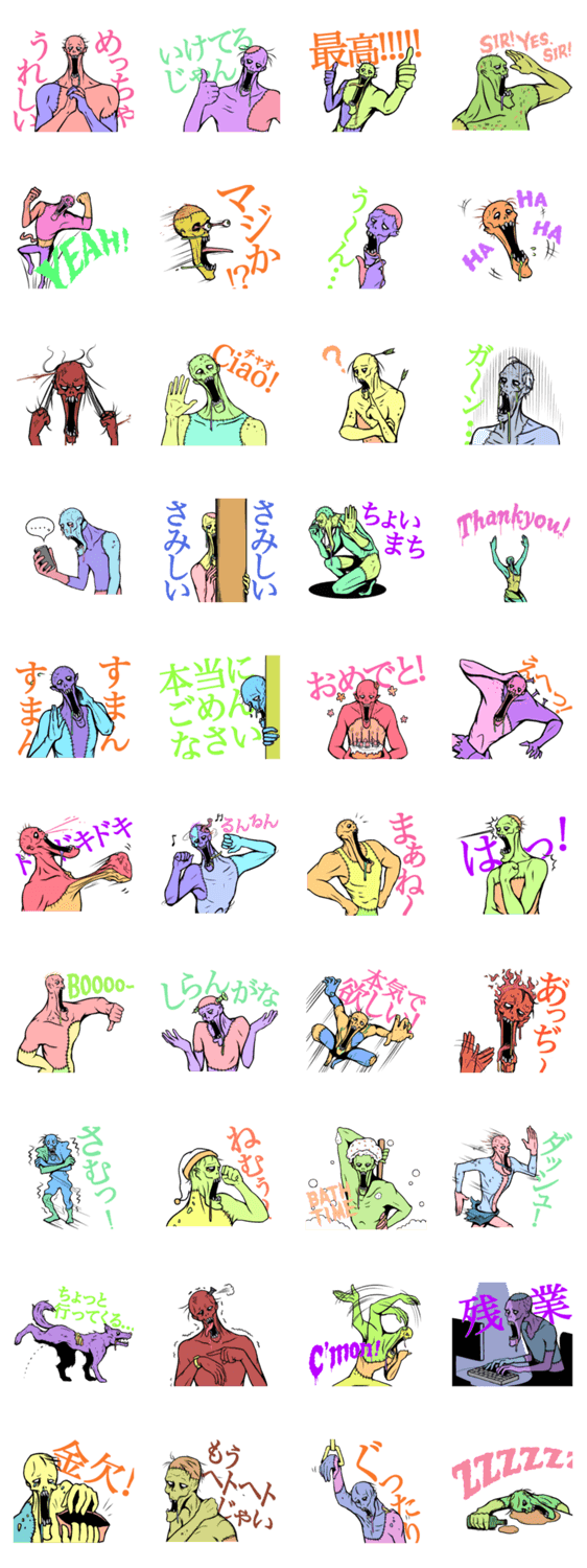 ゆかいなゾンビさん 日本語.ver Rei コメントをどうぞ おもしろゾンビのスタンプです。ゾンビになっても人生楽しんでます。ちょっとくだけたゾンビさんなので使い方に注意しましょう。 このスタンプどう思う?!↓クリックで投票♪好き (0)かわいい (0)かっこいい (0)おもしろい (0)使いやすそう (0)欲しい (0)萌え (0)ほっこりする (0)おしゃれ (0)ゆるい (0)こわい (0)ウザい (0)キモい (0)ムカつく (0)持ってる (0)癒される (0)セクシー (0)個性的 (0)私は買わない (0)誰かプレゼントして! (0) 購入・プレゼントする Facebookでシェア Twitterでシェア