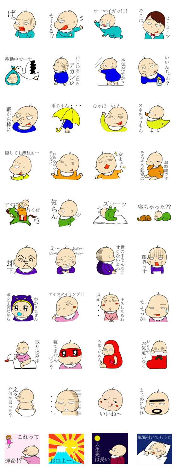 ゆずるくん サハリン コメントをどうぞ 若干1歳にして酸いも甘いも知り尽くしたゆずるくんが無邪気にちょっぴり上から目線で答えてくれます。 このスタンプどう思う?!↓クリックで投票♪好き (0)かわいい (0)かっこいい (0)おもしろい (0)使いやすそう (0)欲しい (0)萌え (0)ほっこりする (0)おしゃれ (0)ゆるい (0)こわい (0)ウザい (0)キモい (0)ムカつく (0)持ってる (0)癒される (0)セクシー (0)個性的 (0)私は買わない (0)誰かプレゼントして! (0) 購入・プレゼントする Facebookでシェア Twitterでシェア