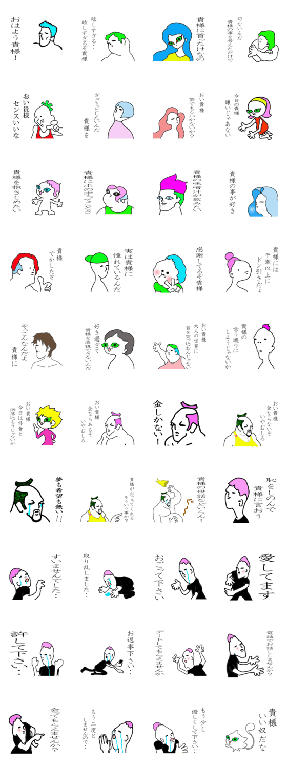 ゆるきもMAX3(貴様への愛編) teppei コメントをどうぞ 今回のゆるきも野郎達は究極に不器用でして、相手を(貴様)としか呼べません。先輩や上司には決して送らない様にしましょう。 このスタンプどう思う?!↓クリックで投票♪好き (0)かわいい (0)かっこいい (0)おもしろい (0)使いやすそう (0)欲しい (0)萌え (0)ほっこりする (0)おしゃれ (0)ゆるい (0)こわい (0)ウザい (0)キモい (0)ムカつく (0)持ってる (0)癒される (0)セクシー (0)個性的 (0)私は買わない (0)誰かプレゼントして! (0) 購入・プレゼントする Facebookでシェア Twitterでシェア
