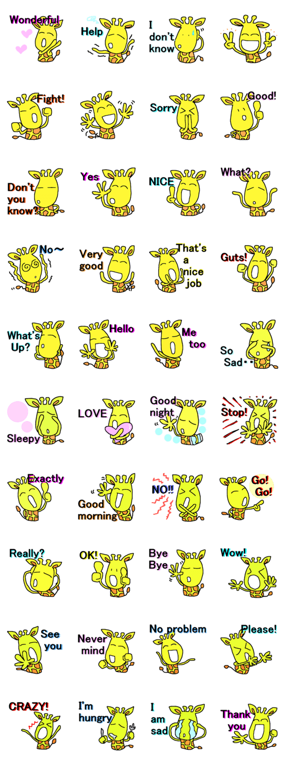 ゆるきりん6 shinnosukei コメントをどうぞ ゆるきりんの簡単な英語バージョン登場ゆるきりんの このスタンプどう思う?!↓クリックで投票♪好き (0)かわいい (0)かっこいい (0)おもしろい (0)使いやすそう (0)欲しい (0)萌え (0)ほっこりする (0)おしゃれ (0)ゆるい (0)こわい (0)ウザい (0)キモい (0)ムカつく (0)持ってる (0)癒される (0)セクシー (0)個性的 (0)私は買わない (0)誰かプレゼントして! (0) 購入・プレゼントする Facebookでシェア Twitterでシェア