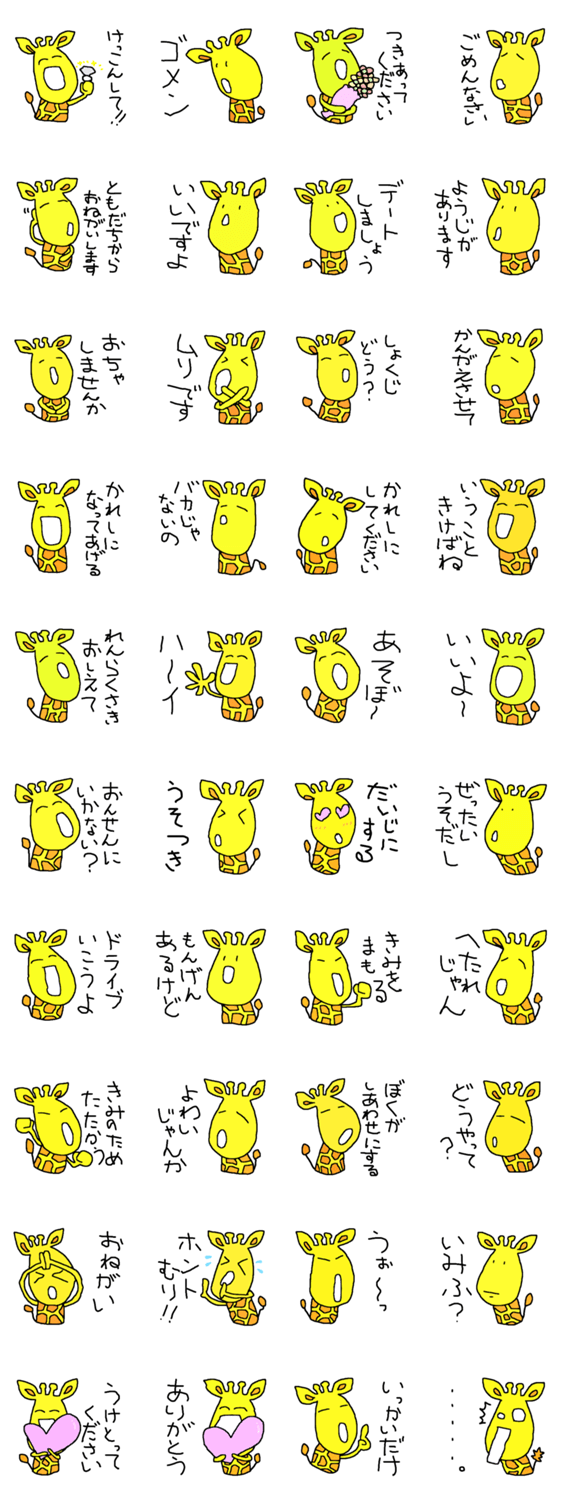 ゆるきりん8 shinnosukei コメントをどうぞ ゆるきりんの第8弾!! このスタンプどう思う?!↓クリックで投票♪好き (0)かわいい (0)かっこいい (0)おもしろい (0)使いやすそう (0)欲しい (0)萌え (0)ほっこりする (0)おしゃれ (0)ゆるい (0)こわい (0)ウザい (0)キモい (0)ムカつく (0)持ってる (0)癒される (0)セクシー (0)個性的 (0)私は買わない (0)誰かプレゼントして! (0) 購入・プレゼントする Facebookでシェア Twitterでシェア