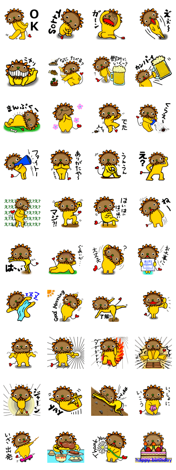ゆるっと黄色いライオン syuu-kyuu-nanoka コメントをどうぞ 黄色いライオンが、時にゆるっと、時にコミカルに、みなさんの気持ちをスタンプで表します。 このスタンプどう思う?!↓クリックで投票♪好き (0)かわいい (0)かっこいい (0)おもしろい (0)使いやすそう (0)欲しい (0)萌え (0)ほっこりする (0)おしゃれ (0)ゆるい (0)こわい (0)ウザい (0)キモい (0)ムカつく (0)持ってる (0)癒される (0)セクシー (0)個性的 (0)私は買わない (0)誰かプレゼントして! (0) 購入・プレゼントする Facebookでシェア Twitterでシェア