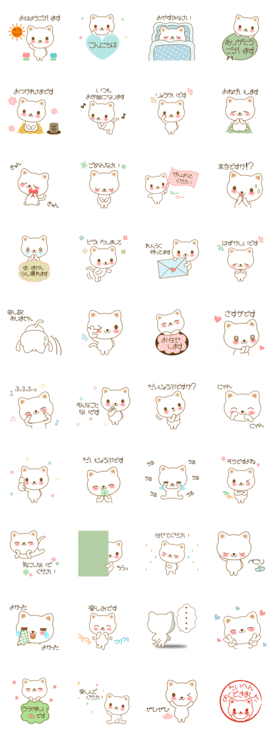 ゆるねこの敬語 Lily コメントをどうぞ 白い猫のにゃんこスタンプ。日常よく使う敬語、丁寧語をスタンプにしました。お友達はもちろん、ママ友、上司や先輩など目上の人との会話にも使えます。 このスタンプどう思う?!↓クリックで投票♪好き (0)かわいい (0)かっこいい (0)おもしろい (0)使いやすそう (0)欲しい (0)萌え (0)ほっこりする (0)おしゃれ (0)ゆるい (0)こわい (0)ウザい (0)キモい (0)ムカつく (0)持ってる (0)癒される (0)セクシー (0)個性的 (0)私は買わない (0)誰かプレゼントして! (0) 購入・プレゼントする Facebookでシェア Twitterでシェア