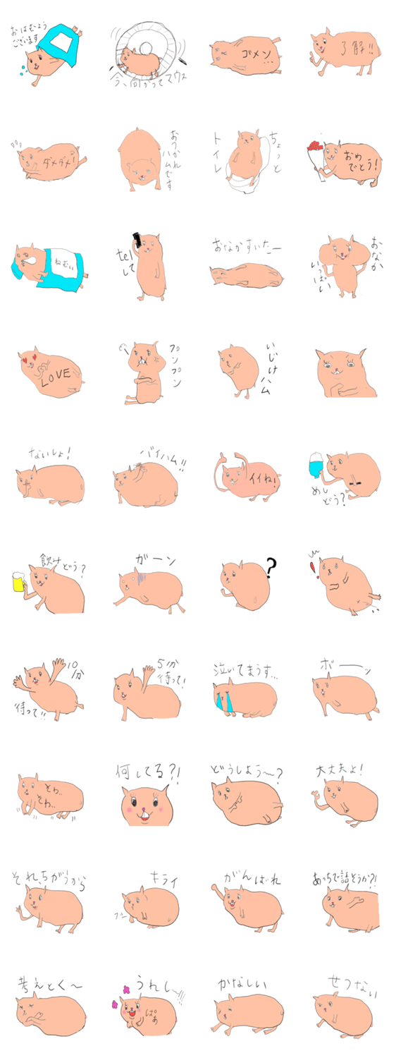 ゆるはむ スイート コメントをどうぞ 手書きタッチのゆるーいハムスターです。 このスタンプどう思う?!↓クリックで投票♪好き (0)かわいい (0)かっこいい (0)おもしろい (0)使いやすそう (0)欲しい (0)萌え (0)ほっこりする (0)おしゃれ (0)ゆるい (0)こわい (0)ウザい (0)キモい (0)ムカつく (0)持ってる (0)癒される (0)セクシー (0)個性的 (0)私は買わない (0)誰かプレゼントして! (0) 購入・プレゼントする Facebookでシェア Twitterでシェア