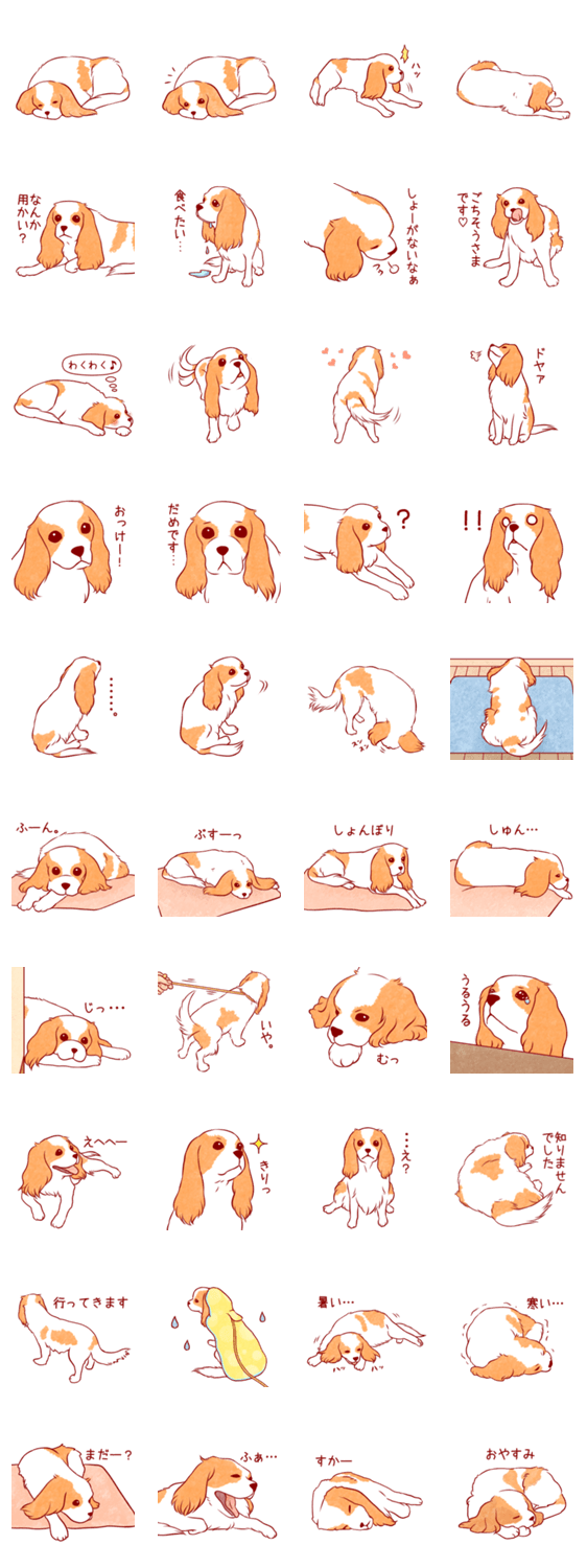 ゆるふわキャバリア リリー コメントをどうぞ やさしい色づかいで描いた、ちょっぴりクールなラブちゃんのスタンプです。甘えたり怒ったり…キャバリアのいろんな表情を楽しんでくださいね♪ このスタンプどう思う?!↓クリックで投票♪好き (0)かわいい (0)かっこいい (0)おもしろい (0)使いやすそう (0)欲しい (0)萌え (0)ほっこりする (0)おしゃれ (0)ゆるい (0)こわい (0)ウザい (0)キモい (0)ムカつく (0)持ってる (0)癒される (0)セクシー (0)個性的 (0)私は買わない (0)誰かプレゼントして! (0) 購入・プレゼントする Facebookでシェア Twitterでシェア