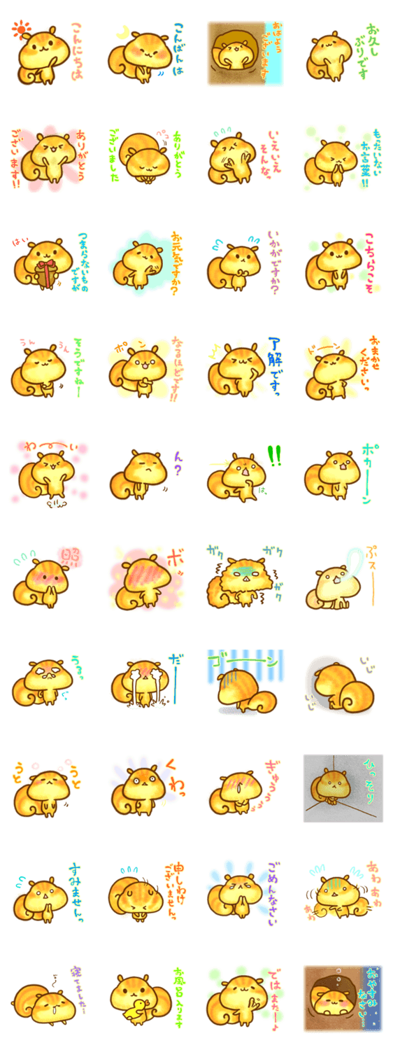 ゆる敬語リス sakurapu コメントをどうぞ 敬語を話すシマリスです。 このスタンプどう思う?!↓クリックで投票♪好き (0)かわいい (0)かっこいい (0)おもしろい (0)使いやすそう (0)欲しい (0)萌え (0)ほっこりする (0)おしゃれ (0)ゆるい (0)こわい (0)ウザい (0)キモい (0)ムカつく (0)持ってる (0)癒される (0)セクシー (0)個性的 (0)私は買わない (0)誰かプレゼントして! (0) 購入・プレゼントする Facebookでシェア Twitterでシェア