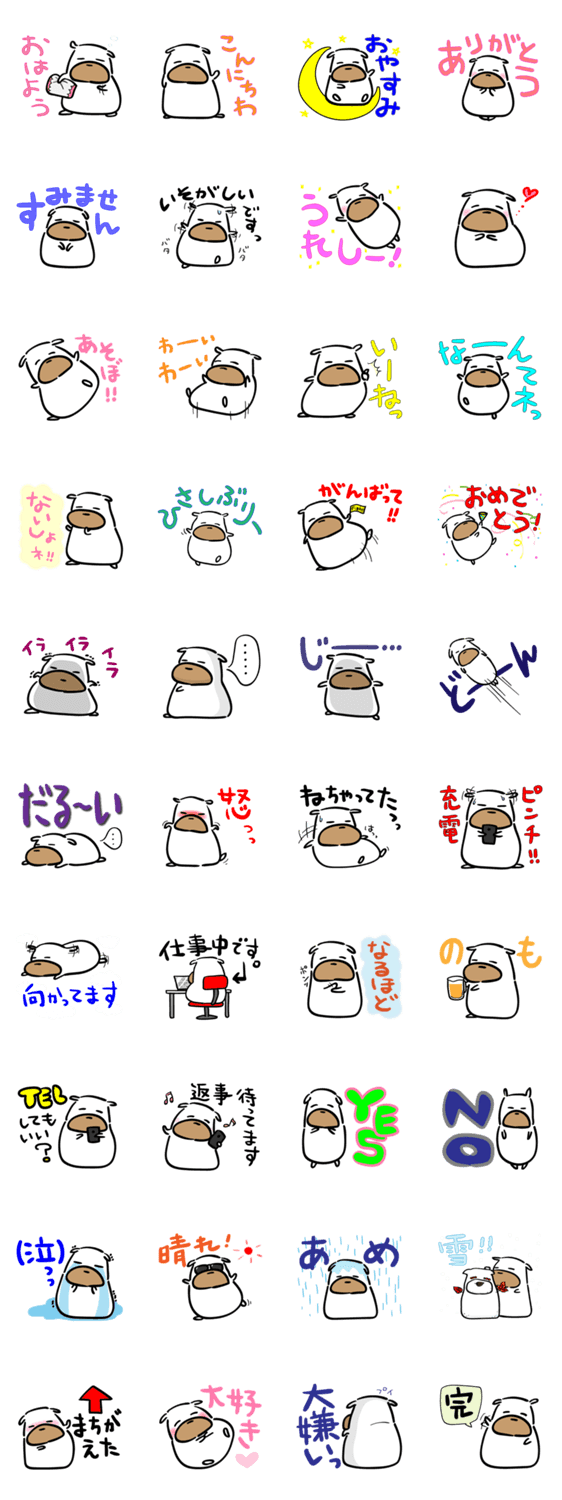 よろしくコウマさん トントンクリエイト コメントをどうぞ 名前はコウマ。犬でもうさぎでも馬でもない謎の小動物が、あなたのLINEトークをお手伝い。 このスタンプどう思う?!↓クリックで投票♪好き (0)かわいい (0)かっこいい (0)おもしろい (0)使いやすそう (0)欲しい (0)萌え (0)ほっこりする (0)おしゃれ (0)ゆるい (0)こわい (0)ウザい (0)キモい (0)ムカつく (0)持ってる (0)癒される (0)セクシー (0)個性的 (0)私は買わない (0)誰かプレゼントして! (0) 購入・プレゼントする Facebookでシェア Twitterでシェア