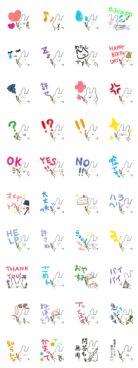 らくがき うさぎ からいし コメントをどうぞ うさぎのらくがきのスタンプです。日々の会話にらくがきしちゃいましょう! このスタンプどう思う?!↓クリックで投票♪好き (0)かわいい (0)かっこいい (0)おもしろい (0)使いやすそう (0)欲しい (0)萌え (0)ほっこりする (0)おしゃれ (0)ゆるい (0)こわい (0)ウザい (0)キモい (0)ムカつく (0)持ってる (0)癒される (0)セクシー (0)個性的 (0)私は買わない (0)誰かプレゼントして! (0) 購入・プレゼントする Facebookでシェア Twitterでシェア