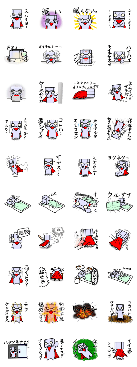 らしくないロボ(眠) katma コメントをどうぞ ロボットらしくないロボ第二弾。仕事や勉強をしていていつの間にか寝てしまう方のためのスタンプです。※常に寝不足・眠い方にもオススメです。 このスタンプどう思う?!↓クリックで投票♪好き (0)かわいい (0)かっこいい (0)おもしろい (0)使いやすそう (0)欲しい (0)萌え (0)ほっこりする (0)おしゃれ (0)ゆるい (0)こわい (0)ウザい (0)キモい (0)ムカつく (0)持ってる (0)癒される (0)セクシー (0)個性的 (0)私は買わない (0)誰かプレゼントして! (0) 購入・プレゼントする Facebookでシェア Twitterでシェア