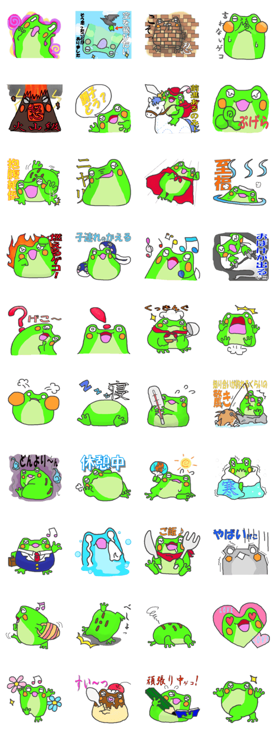 わがはいは蛙ゲコ! J.U. コメントをどうぞ ふてぶてかわいい(?)蛙のスタンプです。その日の気分によって色々な使い方ができるかも。 「まいぺぇすに出陣ゲコ!よろしくゲコ!」 このスタンプどう思う?!↓クリックで投票♪好き (0)かわいい (0)かっこいい (0)おもしろい (0)使いやすそう (0)欲しい (0)萌え (0)ほっこりする (0)おしゃれ (0)ゆるい (0)こわい (0)ウザい (0)キモい (0)ムカつく (0)持ってる (0)癒される (0)セクシー (0)個性的 (0)私は買わない (0)誰かプレゼントして! (0) 購入・プレゼントする Facebookでシェア Twitterでシェア
