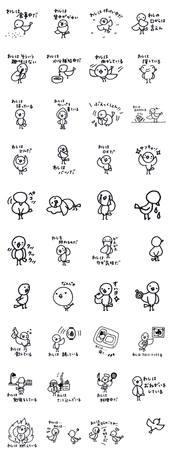 わしはことりだ momi コメントをどうぞ 鷲にあこがれて、気持ちだけは強気な小鳥です。 このスタンプどう思う?!↓クリックで投票♪好き (0)かわいい (0)かっこいい (0)おもしろい (0)使いやすそう (0)欲しい (0)萌え (0)ほっこりする (0)おしゃれ (0)ゆるい (0)こわい (0)ウザい (0)キモい (0)ムカつく (0)持ってる (0)癒される (0)セクシー (0)個性的 (0)私は買わない (0)誰かプレゼントして! (0) 購入・プレゼントする Facebookでシェア Twitterでシェア
