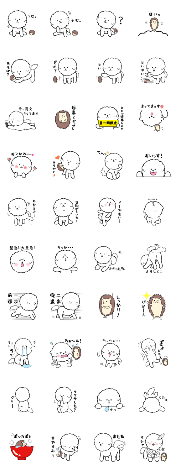 わたあめわんことハリネズミ luluppa コメントをどうぞ 純白ふわふわモコモコないぬとトゲトゲハリネズミのコンビです。犬種はたぶん、ビション・フリーゼです。返答に悩んだ時にフワッと返せます。会話のつなぎにどうぞ♪ このスタンプどう思う?!↓クリックで投票♪好き (0)かわいい (0)かっこいい (0)おもしろい (0)使いやすそう (0)欲しい (0)萌え (0)ほっこりする (0)おしゃれ (0)ゆるい (0)こわい (0)ウザい (0)キモい (0)ムカつく (0)持ってる (0)癒される (0)セクシー (0)個性的 (0)私は買わない (0)誰かプレゼントして! (0) 購入・プレゼントする Facebookでシェア Twitterでシェア