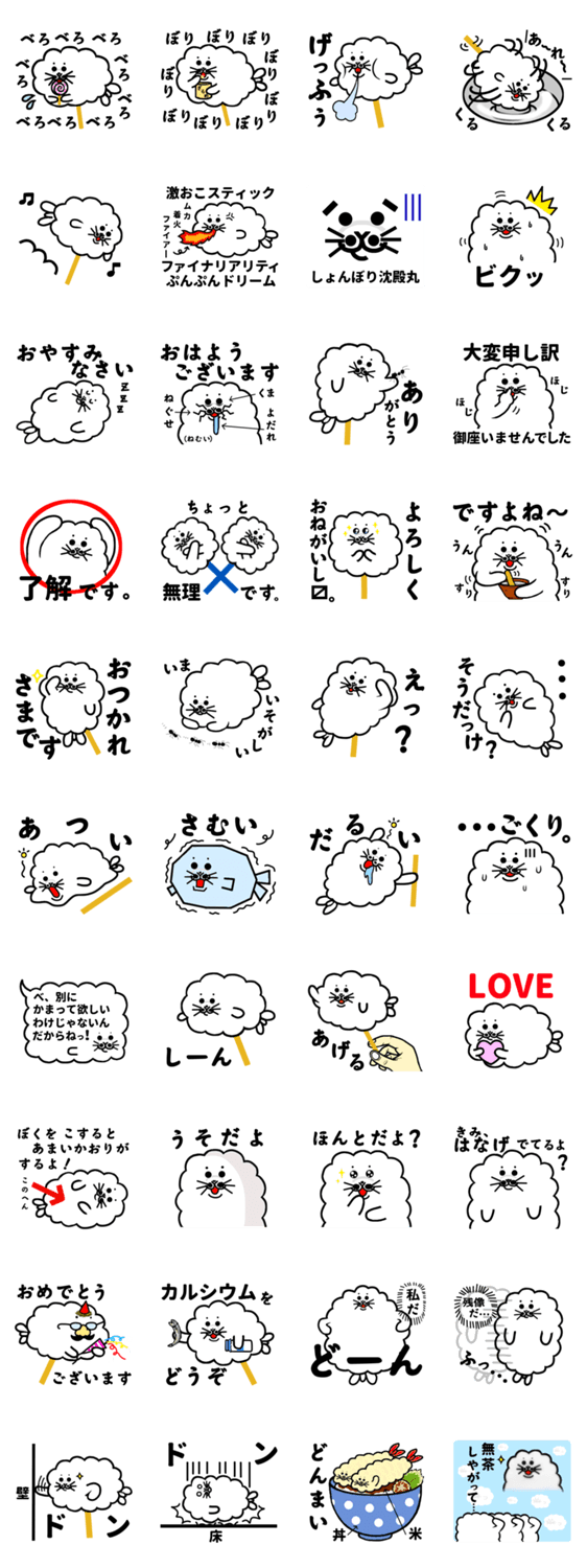 わたがしあざらし あんこ コメントをどうぞ わたがしがあざらしになったのか、あざらしがわたがしになったのか、正直よくわからない。 このスタンプどう思う?!↓クリックで投票♪好き (0)かわいい (0)かっこいい (0)おもしろい (0)使いやすそう (0)欲しい (0)萌え (0)ほっこりする (0)おしゃれ (0)ゆるい (0)こわい (0)ウザい (0)キモい (0)ムカつく (0)持ってる (0)癒される (0)セクシー (0)個性的 (0)私は買わない (0)誰かプレゼントして! (0) 購入・プレゼントする Facebookでシェア Twitterでシェア