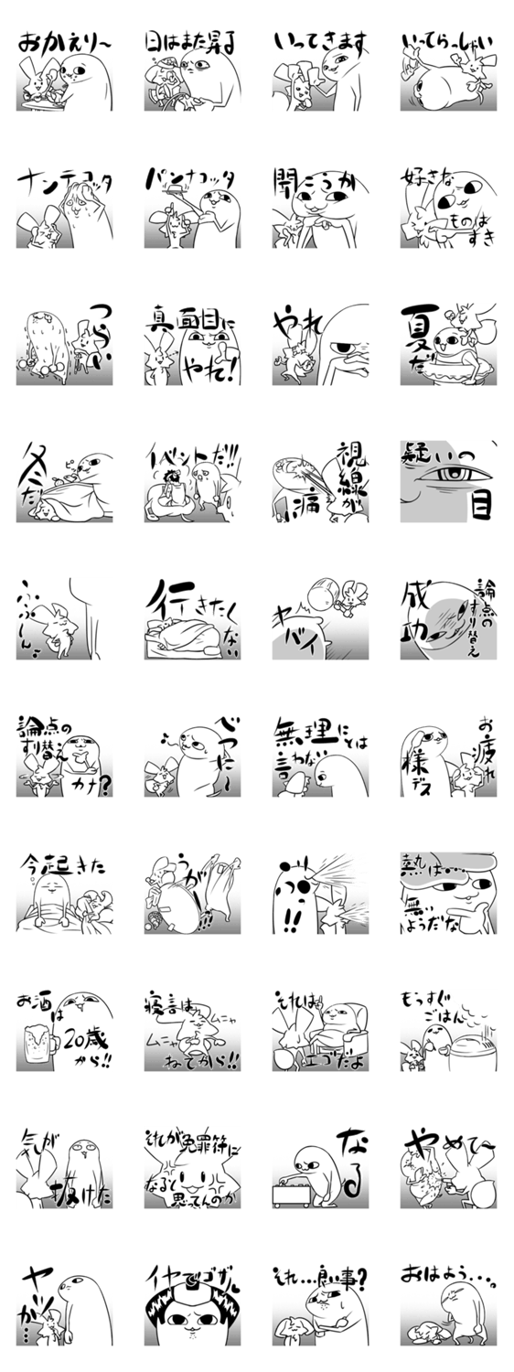わんこむ&もしょもしょ その3 ざんま コメントをどうぞ 謎の生物わんこむとその友達もしょもしょの日常その2です。 このスタンプどう思う?!↓クリックで投票♪好き (0)かわいい (0)かっこいい (0)おもしろい (0)使いやすそう (0)欲しい (0)萌え (0)ほっこりする (0)おしゃれ (0)ゆるい (0)こわい (0)ウザい (0)キモい (0)ムカつく (0)持ってる (0)癒される (0)セクシー (0)個性的 (0)私は買わない (0)誰かプレゼントして! (0) 購入・プレゼントする Facebookでシェア Twitterでシェア