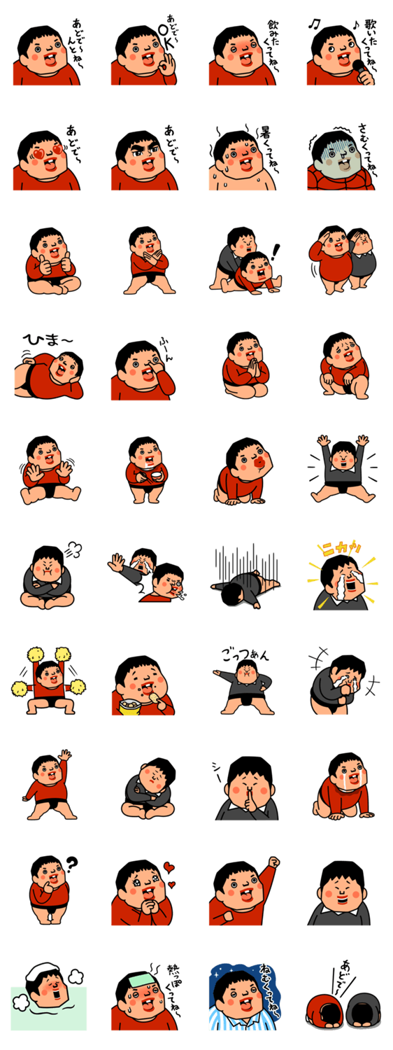 わんぱくあどちゃん / by studio crocodile ソニー・デジタルエンタテインメント コメントをどうぞ 将来の夢は立派なお相撲さんになる事。とても仲良し、おデブな兄弟がテレビのインタビューに答えたりしています。 このスタンプどう思う?!↓クリックで投票♪好き (0)かわいい (0)かっこいい (0)おもしろい (0)使いやすそう (0)欲しい (0)萌え (0)ほっこりする (0)おしゃれ (0)ゆるい (0)こわい (0)ウザい (0)キモい (0)ムカつく (0)持ってる (0)癒される (0)セクシー (0)個性的 (0)私は買わない (0)誰かプレゼントして! (0) 購入・プレゼントする Facebookでシェア Twitterでシェア