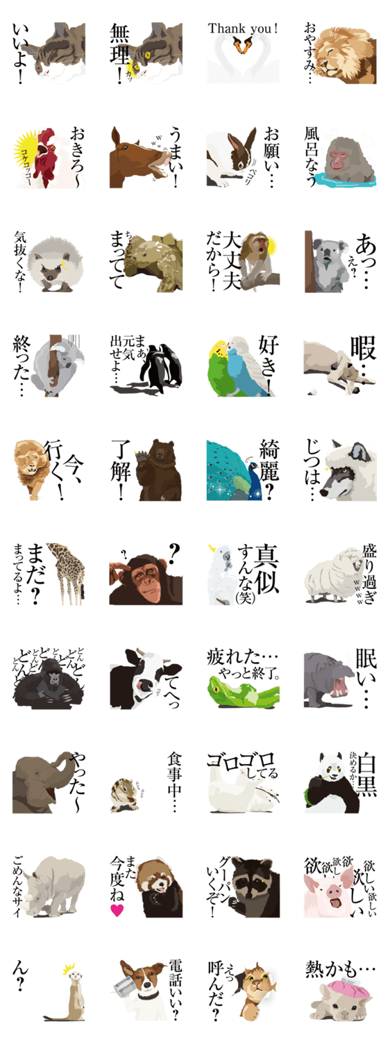 アニまる本舗 ibuki コメントをどうぞ ちょっとリアルな動物たちによるスタンプです。日常会話で使えそうなスタンプを用意してみました! このスタンプどう思う?!↓クリックで投票♪好き (0)かわいい (0)かっこいい (0)おもしろい (0)使いやすそう (0)欲しい (0)萌え (0)ほっこりする (0)おしゃれ (0)ゆるい (0)こわい (0)ウザい (0)キモい (0)ムカつく (0)持ってる (0)癒される (0)セクシー (0)個性的 (0)私は買わない (0)誰かプレゼントして! (0) 購入・プレゼントする Facebookでシェア Twitterでシェア