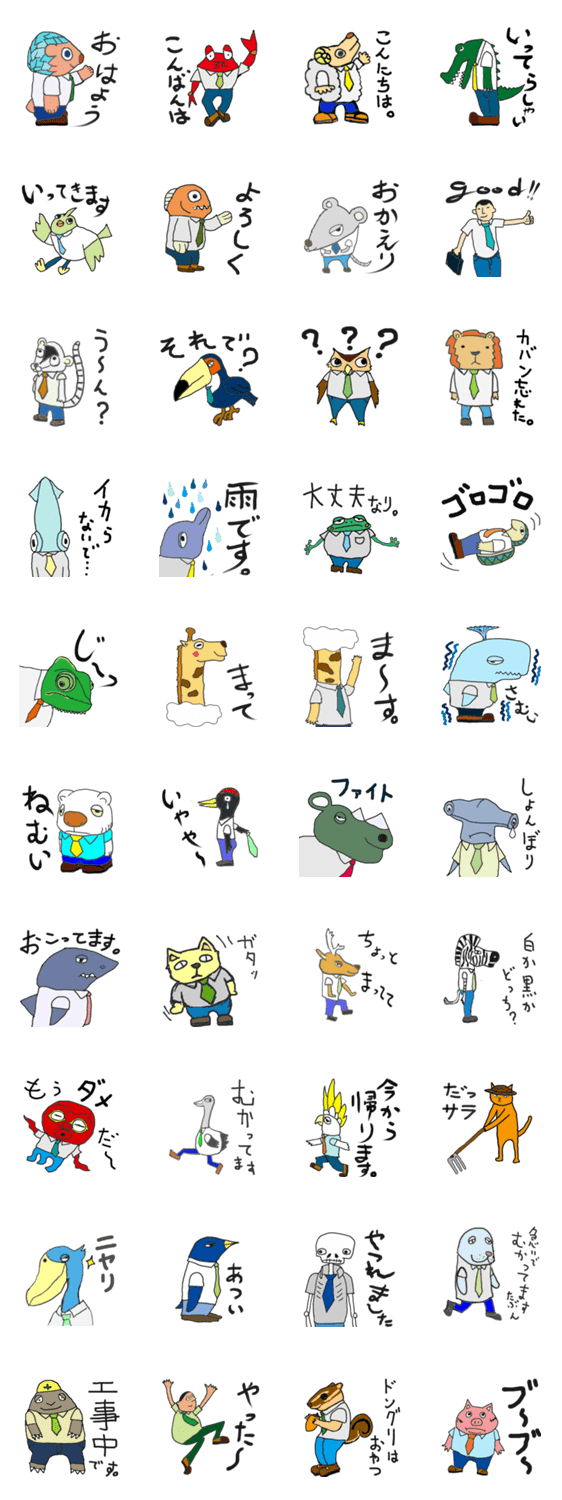 アニマルサラリーマン、40人日常スタンプ 櫛下街祥吾 コメントをどうぞ かわいい動物のサラリーマンの日常のスタンプです。40人居てます!! このスタンプどう思う?!↓クリックで投票♪好き (0)かわいい (0)かっこいい (0)おもしろい (0)使いやすそう (0)欲しい (0)萌え (0)ほっこりする (0)おしゃれ (0)ゆるい (0)こわい (0)ウザい (0)キモい (0)ムカつく (0)持ってる (0)癒される (0)セクシー (0)個性的 (0)私は買わない (0)誰かプレゼントして! (0) 購入・プレゼントする Facebookでシェア Twitterでシェア