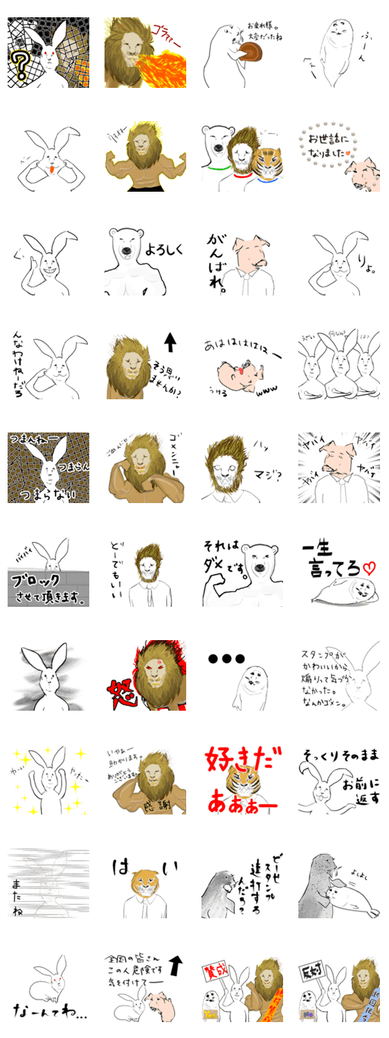 アニマル・アニマル morinoky コメントをどうぞ うさぎ、ライオン、トラ、ぶた、あざらし、しろくまなどの動物スタンプです。 このスタンプどう思う?!↓クリックで投票♪好き (0)かわいい (0)かっこいい (0)おもしろい (0)使いやすそう (0)欲しい (0)萌え (0)ほっこりする (0)おしゃれ (0)ゆるい (0)こわい (0)ウザい (0)キモい (0)ムカつく (0)持ってる (0)癒される (0)セクシー (0)個性的 (0)私は買わない (0)誰かプレゼントして! (0) 購入・プレゼントする Facebookでシェア Twitterでシェア