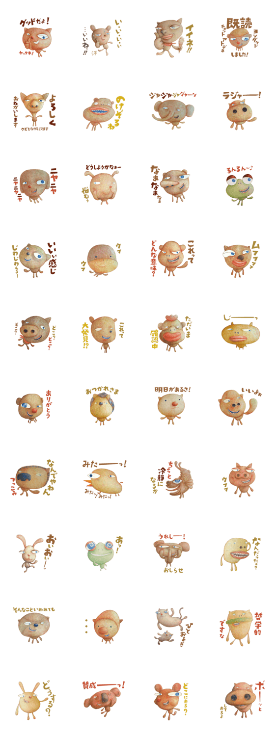 アニマル・ネイキッズ!VOL.2 イトウカツユキ コメントをどうぞ アニマルネイキッズの原画版スタンプです。ちょっと気弱なキャラクターが多いのです。そんなキャラクターが住む不思議な世界を覗いてみませんか。 このスタンプどう思う?!↓クリックで投票♪好き (0)かわいい (0)かっこいい (0)おもしろい (0)使いやすそう (0)欲しい (0)萌え (0)ほっこりする (0)おしゃれ (0)ゆるい (0)こわい (0)ウザい (0)キモい (0)ムカつく (0)持ってる (0)癒される (0)セクシー (0)個性的 (0)私は買わない (0)誰かプレゼントして! (0) 購入・プレゼントする Facebookでシェア Twitterでシェア