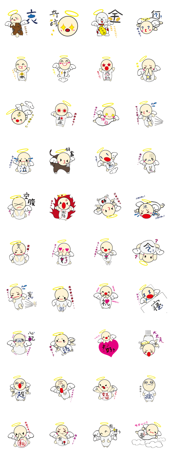 アネラちゃんのイラスト漢字 tsuyoshi nakamura コメントをどうぞ 天使のアネラちゃん。いろんな感情を漢字で表現しています。「楽しい」「大好き」などなど。あなたの気持ちをこのスタンプで表現してみては? このスタンプどう思う?!↓クリックで投票♪好き (0)かわいい (0)かっこいい (0)おもしろい (0)使いやすそう (0)欲しい (0)萌え (0)ほっこりする (0)おしゃれ (0)ゆるい (0)こわい (0)ウザい (0)キモい (0)ムカつく (0)持ってる (0)癒される (0)セクシー (0)個性的 (0)私は買わない (0)誰かプレゼントして! (0) 購入・プレゼントする Facebookでシェア Twitterでシェア