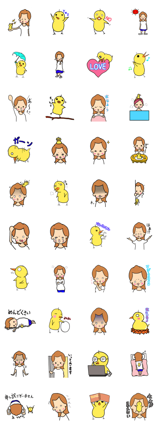 アヒルと彼女 masaru コメントをどうぞ 表情豊かな女性とかわいいペットのアヒルをラインスタンプにしました。 このスタンプどう思う?!↓クリックで投票♪好き (0)かわいい (0)かっこいい (0)おもしろい (0)使いやすそう (0)欲しい (0)萌え (0)ほっこりする (0)おしゃれ (0)ゆるい (0)こわい (0)ウザい (0)キモい (0)ムカつく (0)持ってる (0)癒される (0)セクシー (0)個性的 (0)私は買わない (0)誰かプレゼントして! (0) 購入・プレゼントする Facebookでシェア Twitterでシェア
