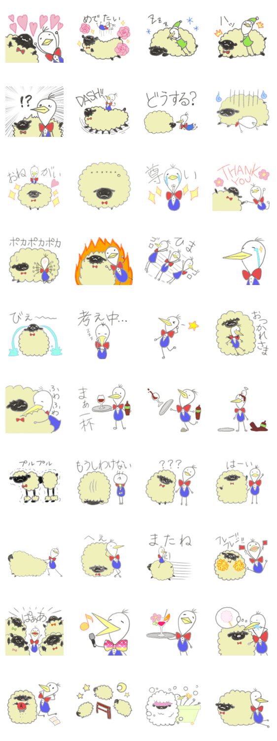 アヒルと羊のスタンプ 来海 冴 コメントをどうぞ バーテンダーのアヒルとマイペースなひつじのスタンプです。おそろいの赤い蝶ネクタイをした仲良しさんです。 このスタンプどう思う?!↓クリックで投票♪好き (0)かわいい (0)かっこいい (0)おもしろい (0)使いやすそう (0)欲しい (0)萌え (0)ほっこりする (0)おしゃれ (0)ゆるい (0)こわい (0)ウザい (0)キモい (0)ムカつく (0)持ってる (0)癒される (0)セクシー (0)個性的 (0)私は買わない (0)誰かプレゼントして! (0) 購入・プレゼントする Facebookでシェア Twitterでシェア