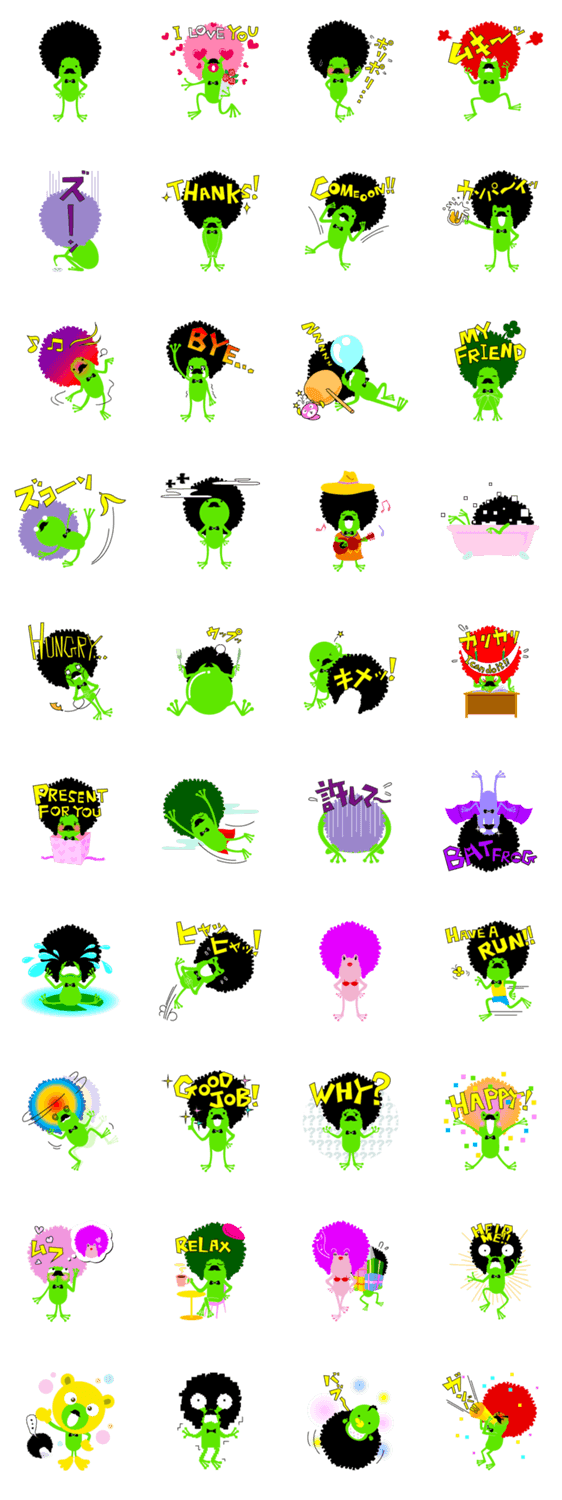 アフロッグ HIDEYUKI コメントをどうぞ アフロッグはおちゃめでファンキーなジェントルフロッグ。 愛する奥様と赤ちゃんのために、今日も元気に踊ります!! 口グセは「キメっ!!」 このスタンプどう思う?!↓クリックで投票♪好き (0)かわいい (0)かっこいい (0)おもしろい (0)使いやすそう (0)欲しい (0)萌え (0)ほっこりする (0)おしゃれ (0)ゆるい (0)こわい (0)ウザい (0)キモい (0)ムカつく (0)持ってる (0)癒される (0)セクシー (0)個性的 (0)私は買わない (0)誰かプレゼントして! (0) 購入・プレゼントする Facebookでシェア Twitterでシェア