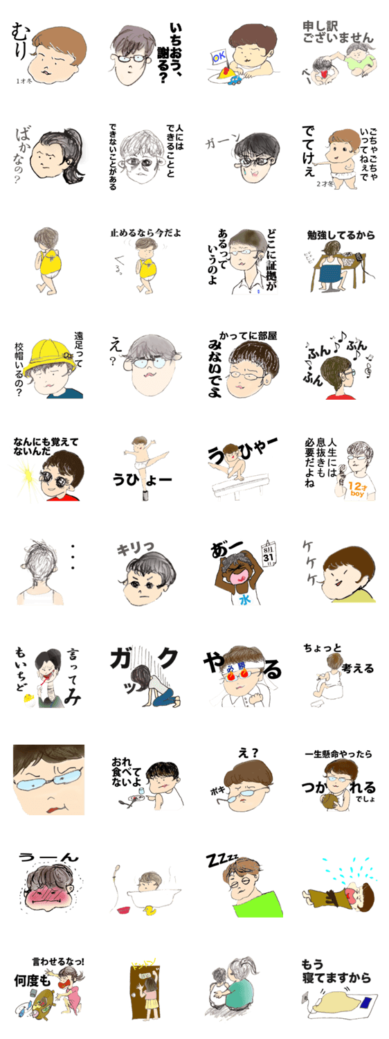 アホ男子そして母 朱鷺の母 コメントをどうぞ アホ男子と母の”あるある”スタンプ。アホ男子・ママ友で是非ご共有下さい。果てしないアホ男子の成長と、それにあらがう母との共存。これは正に”愛の記録”。 このスタンプどう思う?!↓クリックで投票♪好き (0)かわいい (0)かっこいい (0)おもしろい (0)使いやすそう (0)欲しい (0)萌え (0)ほっこりする (0)おしゃれ (0)ゆるい (0)こわい (0)ウザい (0)キモい (0)ムカつく (0)持ってる (0)癒される (0)セクシー (0)個性的 (0)私は買わない (0)誰かプレゼントして! (0) 購入・プレゼントする Facebookでシェア Twitterでシェア