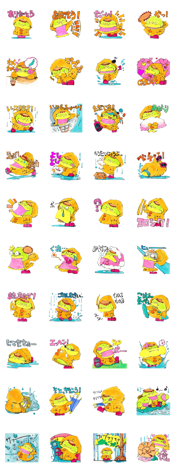 アマガッパッパ アトリエやじろべぇ コメントをどうぞ 雨の日の精霊アマガッパッパ。雨の日がちょっぴり楽しくなるスタンプです。 このスタンプどう思う?!↓クリックで投票♪好き (0)かわいい (0)かっこいい (0)おもしろい (0)使いやすそう (0)欲しい (0)萌え (0)ほっこりする (0)おしゃれ (0)ゆるい (0)こわい (0)ウザい (0)キモい (0)ムカつく (0)持ってる (0)癒される (0)セクシー (0)個性的 (0)私は買わない (0)誰かプレゼントして! (0) 購入・プレゼントする Facebookでシェア Twitterでシェア