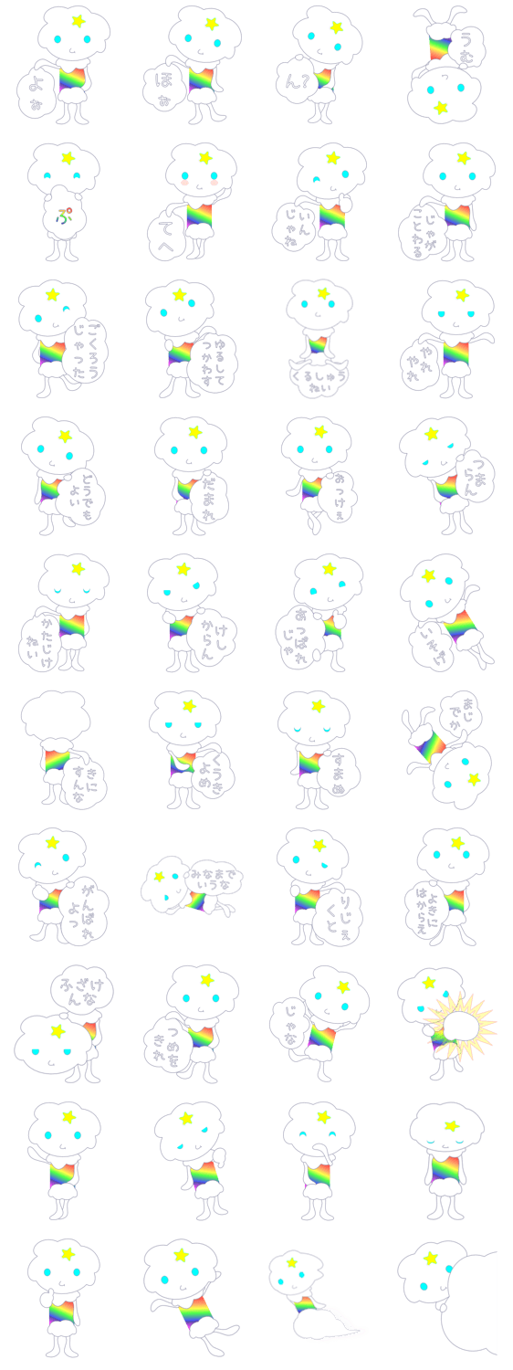アミューズくん plalion コメントをどうぞ 無口なムの口アミューズくんはフロートくんのいとこです。絶対に口を開かないけれど、雲を使って偉そうに言葉を伝えます。※文字色はお使いのLINE背景色になります。 このスタンプどう思う?!↓クリックで投票♪好き (0)かわいい (0)かっこいい (0)おもしろい (0)使いやすそう (0)欲しい (0)萌え (0)ほっこりする (0)おしゃれ (0)ゆるい (0)こわい (0)ウザい (0)キモい (0)ムカつく (0)持ってる (0)癒される (0)セクシー (0)個性的 (0)私は買わない (0)誰かプレゼントして! (0) 購入・プレゼントする Facebookでシェア Twitterでシェア