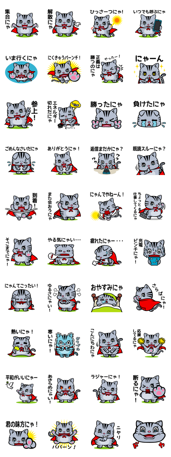 アメショーヒーロー にゃ太郎 けんけん コメントをどうぞ アメリカンショートヘアのヒーロー猫、にゃ太郎の登場です! このスタンプどう思う?!↓クリックで投票♪好き (0)かわいい (0)かっこいい (0)おもしろい (0)使いやすそう (0)欲しい (0)萌え (0)ほっこりする (0)おしゃれ (0)ゆるい (0)こわい (0)ウザい (0)キモい (0)ムカつく (0)持ってる (0)癒される (0)セクシー (0)個性的 (0)私は買わない (0)誰かプレゼントして! (0) 購入・プレゼントする Facebookでシェア Twitterでシェア