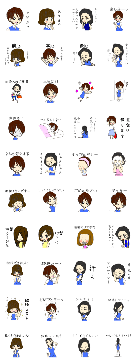 アラサーOL達の心情2 ちくない コメントをどうぞ 意外とデリケートなお年頃のアラサー。厄年だったり出会いに関して複雑な心情あり。アラサーの方もそうでない方も使えそうなものがあればどうぞお使いくださいませ。 このスタンプどう思う?!↓クリックで投票♪好き (0)かわいい (0)かっこいい (0)おもしろい (0)使いやすそう (0)欲しい (0)萌え (0)ほっこりする (0)おしゃれ (0)ゆるい (0)こわい (0)ウザい (0)キモい (0)ムカつく (0)持ってる (0)癒される (0)セクシー (0)個性的 (0)私は買わない (0)誰かプレゼントして! (0) 購入・プレゼントする Facebookでシェア Twitterでシェア
