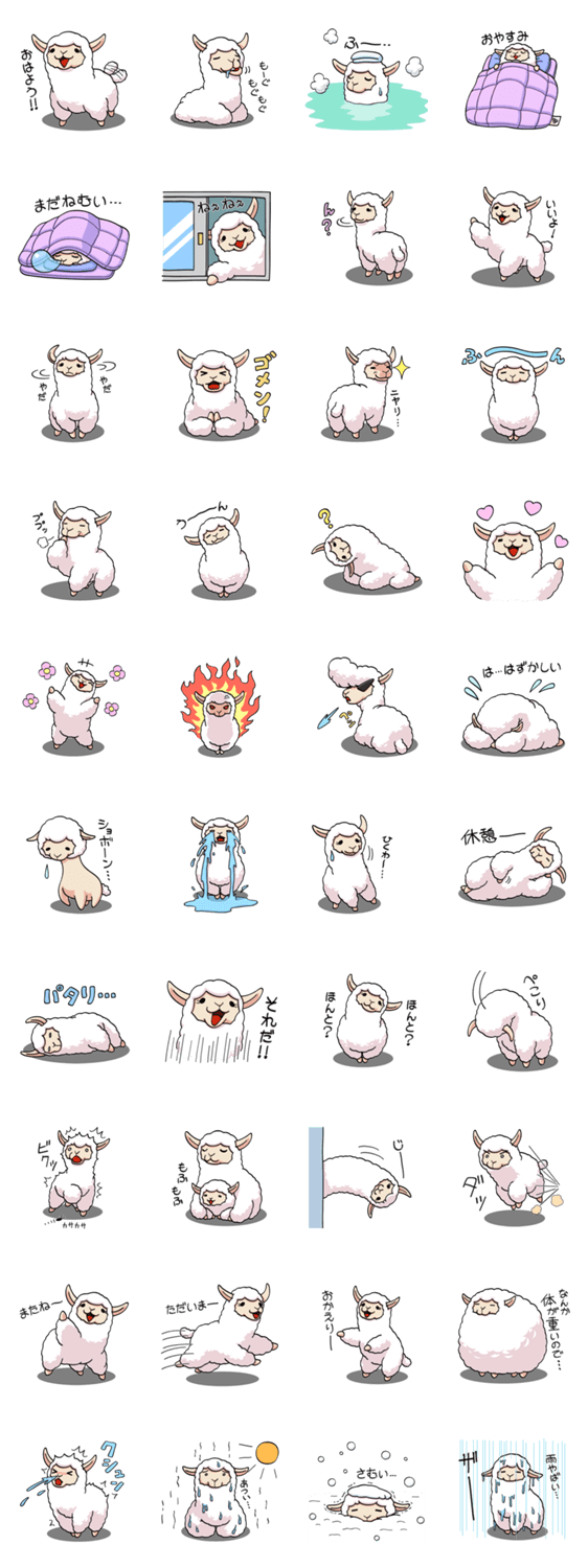 アルパカもふもふ アルテピアッツァ コメントをどうぞ もふもふしたいアルパカのキュートなスタンプです。毎日つかえるあいさつがいっぱい! このスタンプどう思う?!↓クリックで投票♪好き (0)かわいい (0)かっこいい (0)おもしろい (0)使いやすそう (0)欲しい (0)萌え (0)ほっこりする (0)おしゃれ (0)ゆるい (0)こわい (0)ウザい (0)キモい (0)ムカつく (0)持ってる (0)癒される (0)セクシー (0)個性的 (0)私は買わない (0)誰かプレゼントして! (0) 購入・プレゼントする Facebookでシェア Twitterでシェア