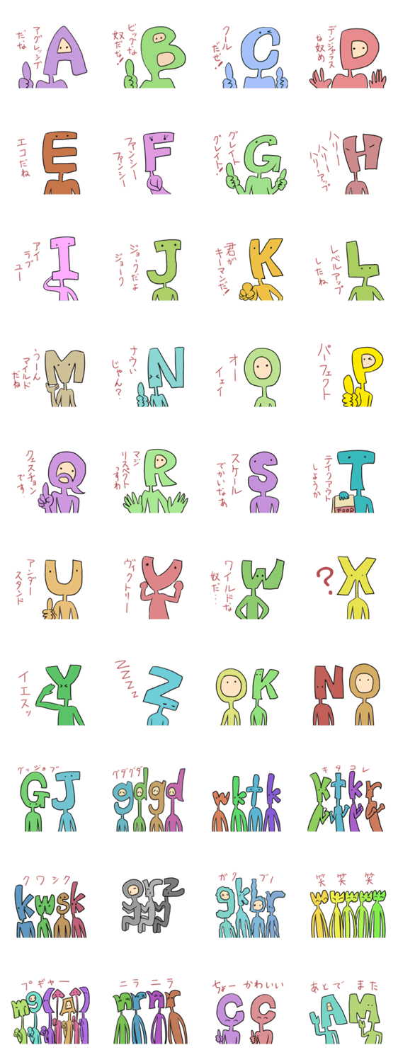 アルファベットマン ちぇるも コメントをどうぞ アルファベットヘッドのキャラクターたち。AからZと、GJ(ぐっジョブ)、gdgd(グダグダ)など収録してるよ。 このスタンプどう思う?!↓クリックで投票♪好き (0)かわいい (0)かっこいい (0)おもしろい (0)使いやすそう (0)欲しい (0)萌え (0)ほっこりする (0)おしゃれ (0)ゆるい (0)こわい (0)ウザい (0)キモい (0)ムカつく (0)持ってる (0)癒される (0)セクシー (0)個性的 (0)私は買わない (0)誰かプレゼントして! (0) 購入・プレゼントする Facebookでシェア Twitterでシェア