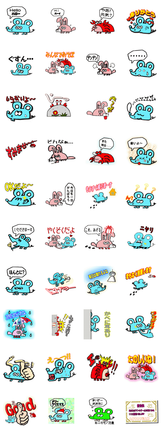 アンタチーム robagame コメントをどうぞ Eマウス・Cラビット・ユーカニのゆかいな3人組みアンタチームは楽しい仲間です このスタンプどう思う?!↓クリックで投票♪好き (0)かわいい (0)かっこいい (0)おもしろい (0)使いやすそう (0)欲しい (0)萌え (0)ほっこりする (0)おしゃれ (0)ゆるい (0)こわい (0)ウザい (0)キモい (0)ムカつく (0)持ってる (0)癒される (0)セクシー (0)個性的 (0)私は買わない (0)誰かプレゼントして! (0) 購入・プレゼントする Facebookでシェア Twitterでシェア