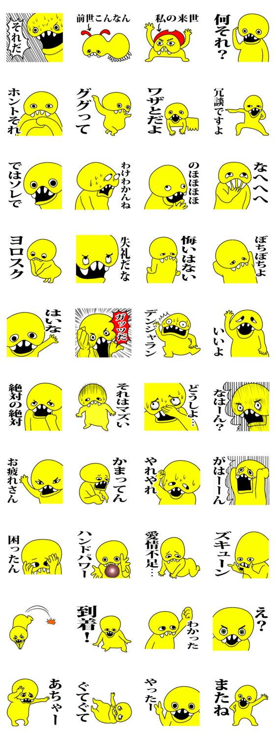イエローマン1号 MAHIRO コメントをどうぞ イエローマンの全身が黄色のため、目がチカチカします。視力を気にする方は購入しないようご注意ください。 このスタンプどう思う?!↓クリックで投票♪好き (0)かわいい (0)かっこいい (0)おもしろい (0)使いやすそう (0)欲しい (0)萌え (0)ほっこりする (0)おしゃれ (0)ゆるい (0)こわい (0)ウザい (0)キモい (0)ムカつく (0)持ってる (0)癒される (0)セクシー (0)個性的 (0)私は買わない (0)誰かプレゼントして! (0) 購入・プレゼントする Facebookでシェア Twitterでシェア