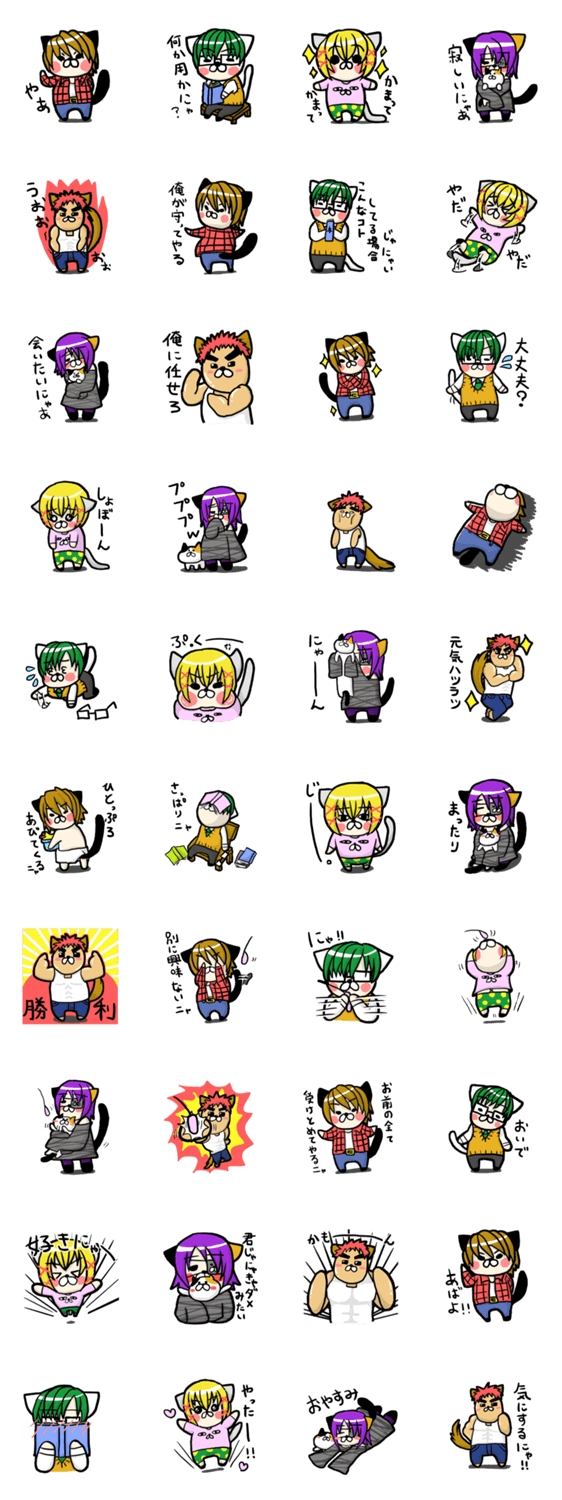 イケニャン☆パラダイス 嫁さん コメントをどうぞ 女性向けゲームにいそうなイケてるねこを集めてみました。お名前募集中。 このスタンプどう思う?!↓クリックで投票♪好き (0)かわいい (0)かっこいい (0)おもしろい (0)使いやすそう (0)欲しい (0)萌え (0)ほっこりする (0)おしゃれ (0)ゆるい (0)こわい (0)ウザい (0)キモい (0)ムカつく (0)持ってる (0)癒される (0)セクシー (0)個性的 (0)私は買わない (0)誰かプレゼントして! (0) 購入・プレゼントする Facebookでシェア Twitterでシェア