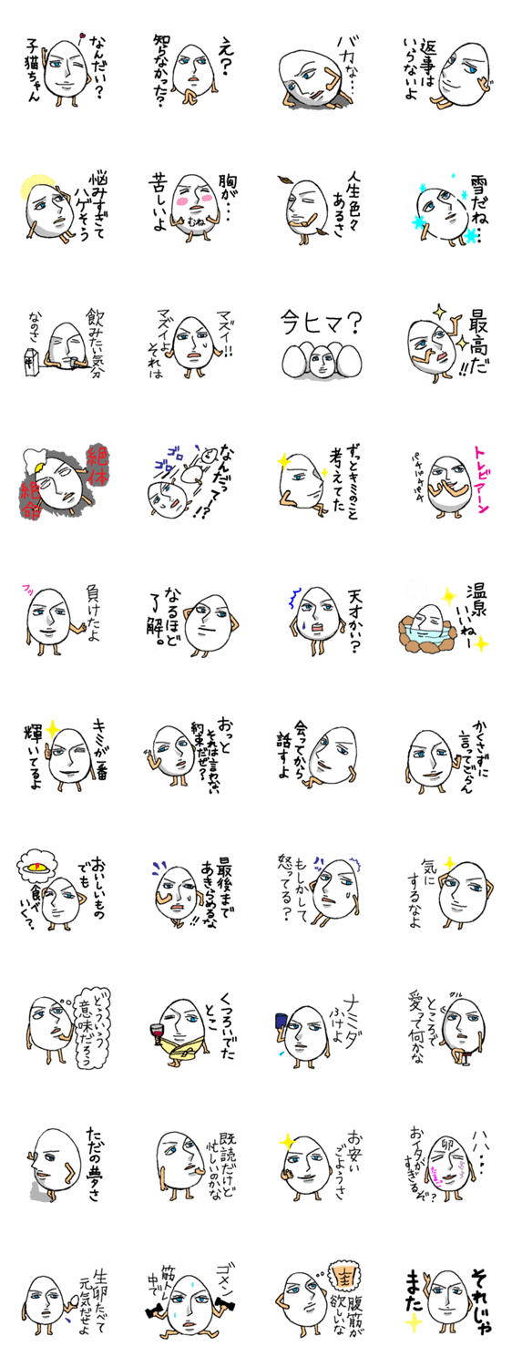 イケメン玉子 ルイ 第二弾 ね子 コメントをどうぞ イケメン王子ならぬイケメン玉子ルイ 第二弾です!ちょっぴりキザなイケメン玉子のセリフで会話を盛り上げ、たまにドン引きされてください。 このスタンプどう思う?!↓クリックで投票♪好き (0)かわいい (0)かっこいい (0)おもしろい (0)使いやすそう (0)欲しい (0)萌え (0)ほっこりする (0)おしゃれ (0)ゆるい (0)こわい (0)ウザい (0)キモい (0)ムカつく (0)持ってる (0)癒される (0)セクシー (0)個性的 (0)私は買わない (0)誰かプレゼントして! (0) 購入・プレゼントする Facebookでシェア Twitterでシェア