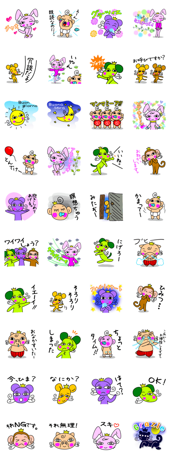 イタリア語あります。 -おうちゃま編- のら丸 コメントをどうぞ イタリアンで可愛い“おうちゃま”キャラでおしゃれなイタリア語と日本語を使い分けて会話を楽しんでください。 このスタンプどう思う?!↓クリックで投票♪好き (0)かわいい (0)かっこいい (0)おもしろい (0)使いやすそう (0)欲しい (0)萌え (0)ほっこりする (0)おしゃれ (0)ゆるい (0)こわい (0)ウザい (0)キモい (0)ムカつく (0)持ってる (0)癒される (0)セクシー (0)個性的 (0)私は買わない (0)誰かプレゼントして! (0) 購入・プレゼントする Facebookでシェア Twitterでシェア
