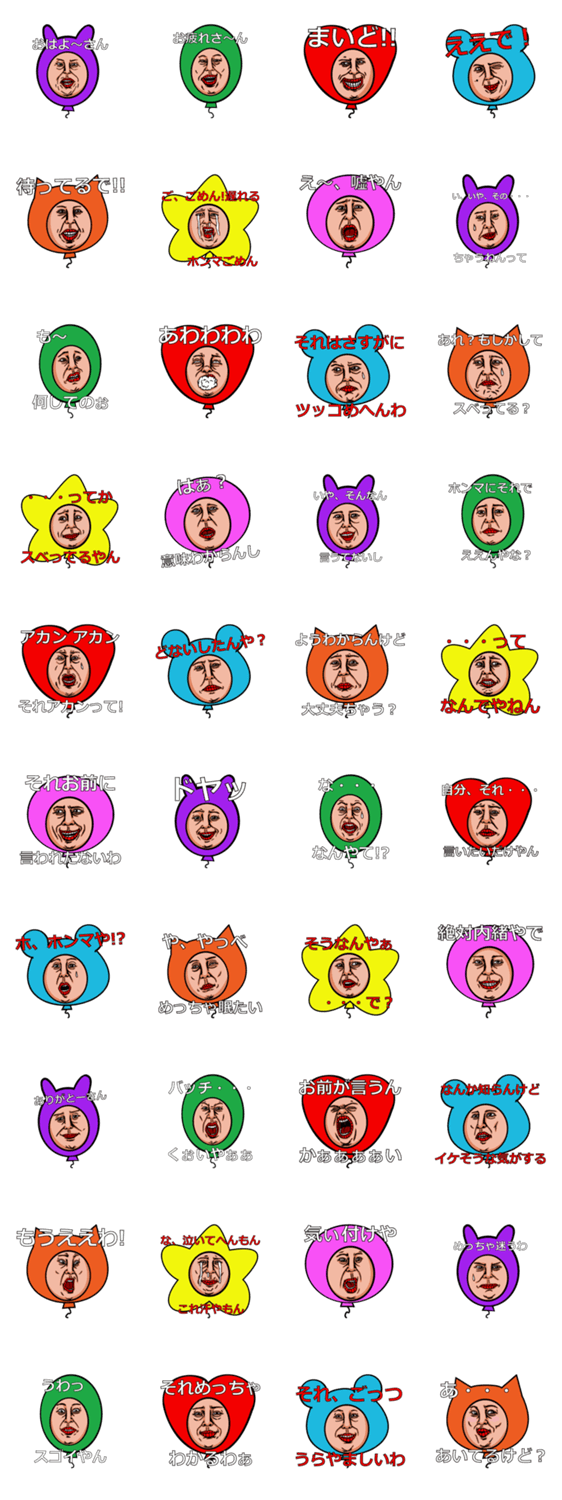 イラっとバルーンVol.4~関西風味~ takahiro_ohara コメントをどうぞ 思わず割ってやりたくなるなんかイラっとする風船たちです。vol.4関西弁Ver.あいさつ・お返事・リアクションをおもしろい表情で返せるシュールなお笑い系スタンプです。 このスタンプどう思う?!↓クリックで投票♪好き (0)かわいい (0)かっこいい (0)おもしろい (0)使いやすそう (0)欲しい (0)萌え (0)ほっこりする (0)おしゃれ (0)ゆるい (0)こわい (0)ウザい (0)キモい (0)ムカつく (0)持ってる (0)癒される (0)セクシー (0)個性的 (0)私は買わない (0)誰かプレゼントして! (0) 購入・プレゼントする Facebookでシェア Twitterでシェア