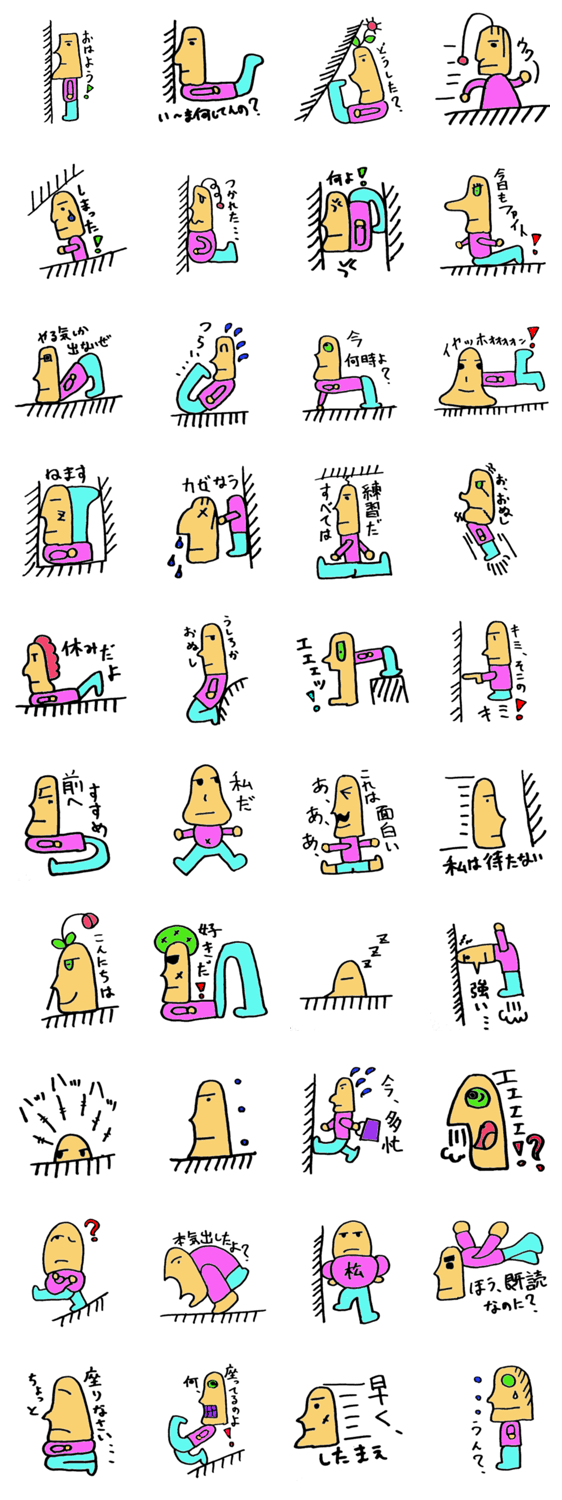 イースター松村君 Mizokei365 コメントをどうぞ ちょっと変わったイースター松村君!モアイ像をモチーフにしたこのイースター松村君はちょっと軟体、不思議な身体。千変万化するイースター松村君に注目だ! このスタンプどう思う?!↓クリックで投票♪好き (0)かわいい (0)かっこいい (0)おもしろい (0)使いやすそう (0)欲しい (0)萌え (0)ほっこりする (0)おしゃれ (0)ゆるい (0)こわい (0)ウザい (0)キモい (0)ムカつく (0)持ってる (0)癒される (0)セクシー (0)個性的 (0)私は買わない (0)誰かプレゼントして! (0) 購入・プレゼントする Facebookでシェア Twitterでシェア