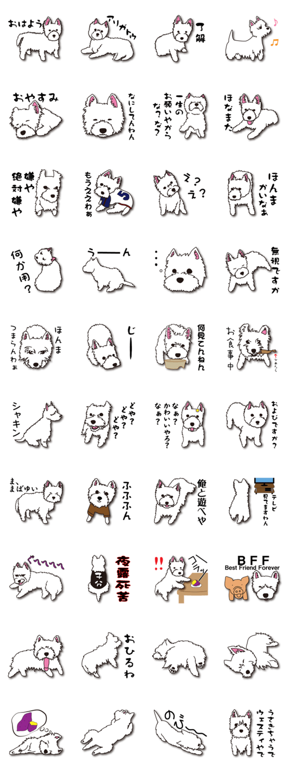 ウェスティ八兵衛2 Mami Kugimoto コメントをどうぞ パワーアップした八兵衛がまたまたトークにお邪魔します。ゆるーい関西弁をお楽しみください。 このスタンプどう思う?!↓クリックで投票♪好き (0)かわいい (0)かっこいい (0)おもしろい (0)使いやすそう (0)欲しい (0)萌え (0)ほっこりする (0)おしゃれ (0)ゆるい (0)こわい (0)ウザい (0)キモい (0)ムカつく (0)持ってる (0)癒される (0)セクシー (0)個性的 (0)私は買わない (0)誰かプレゼントして! (0) 購入・プレゼントする Facebookでシェア Twitterでシェア