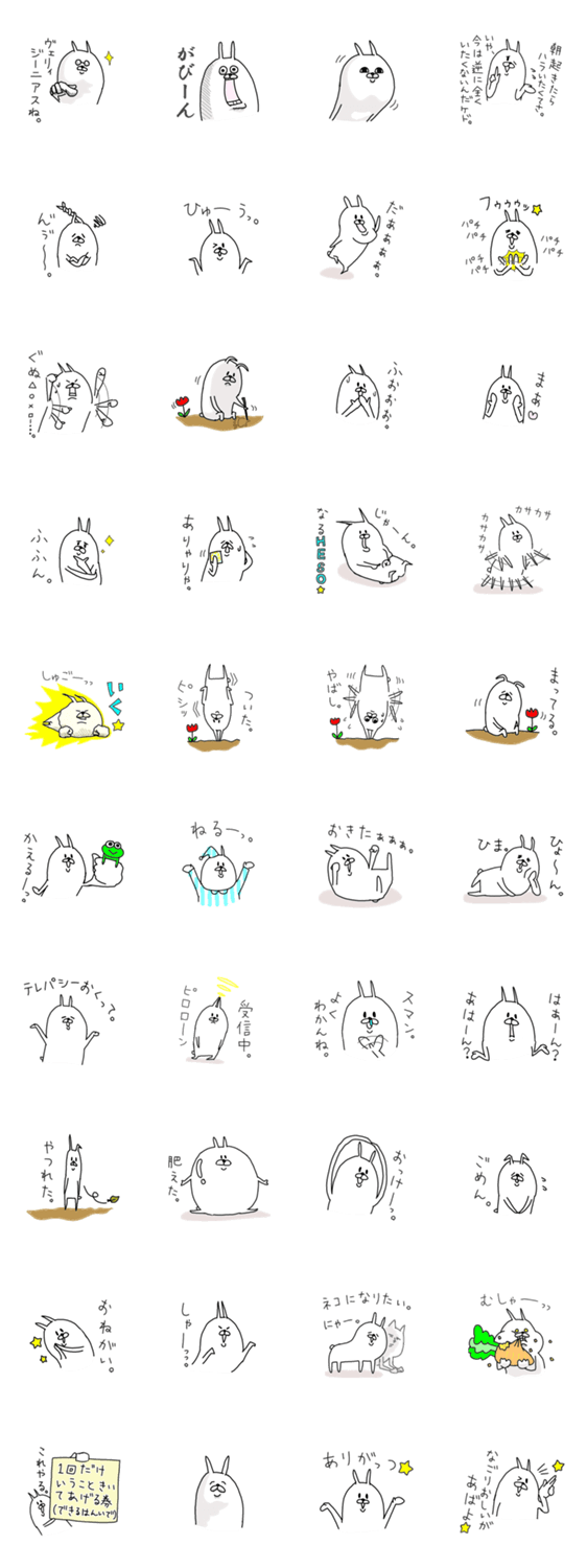 ウサギっぽい奴。 かよじゃが コメントをどうぞ ウサギっぽい奴です。「無表情なネコ」がこっそり紛れ込んでいます。 このスタンプどう思う?!↓クリックで投票♪好き (0)かわいい (0)かっこいい (0)おもしろい (0)使いやすそう (0)欲しい (0)萌え (0)ほっこりする (0)おしゃれ (0)ゆるい (0)こわい (0)ウザい (0)キモい (0)ムカつく (0)持ってる (0)癒される (0)セクシー (0)個性的 (0)私は買わない (0)誰かプレゼントして! (0) 購入・プレゼントする Facebookでシェア Twitterでシェア