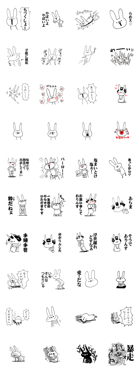 ウサギ大戦 赤塚祭 コメントをどうぞ ゆるい、ちょっとうざい、かわいい動物うさぎさんです。彼らの自由な日々の日常スタンプですが、なぜか江戸率高め。 このスタンプどう思う?!↓クリックで投票♪好き (0)かわいい (0)かっこいい (0)おもしろい (0)使いやすそう (0)欲しい (0)萌え (0)ほっこりする (0)おしゃれ (0)ゆるい (0)こわい (0)ウザい (0)キモい (0)ムカつく (0)持ってる (0)癒される (0)セクシー (0)個性的 (0)私は買わない (0)誰かプレゼントして! (0) 購入・プレゼントする Facebookでシェア Twitterでシェア
